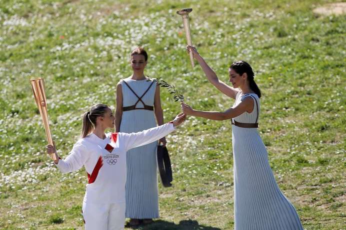 «Para esta ceremonia, lamentamos haber tenido que reducir la participación para proteger la salud pública», declaró el presidente del Comité Olímpico de Grecia, Spyros Capralos.