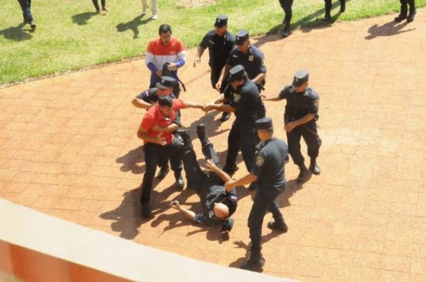 Incluso el intendente municipal, José Carlos Acevedo, salió a entablar una conversación con los manifestantes. Ante la intervención policial, Néstor Ramón Echeverría traspasó la valla de seguridad para increpar al jefe policial, Rodolfo Núñez y al titular de la comuna.