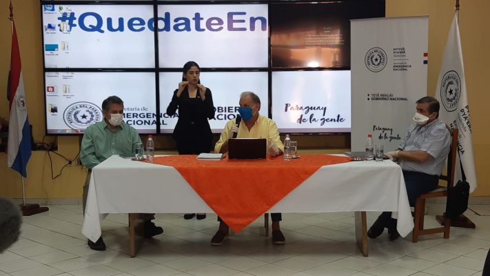 Joaquín Roa, ministro de la SEN, Hugo Cáceres, ministro de Unidad de Gestión y René Fernández, ministro Senac anunciaron en conferencia de prensa las nuevas disposiciones sobre el programa de ayuda a familias vulnerables.
