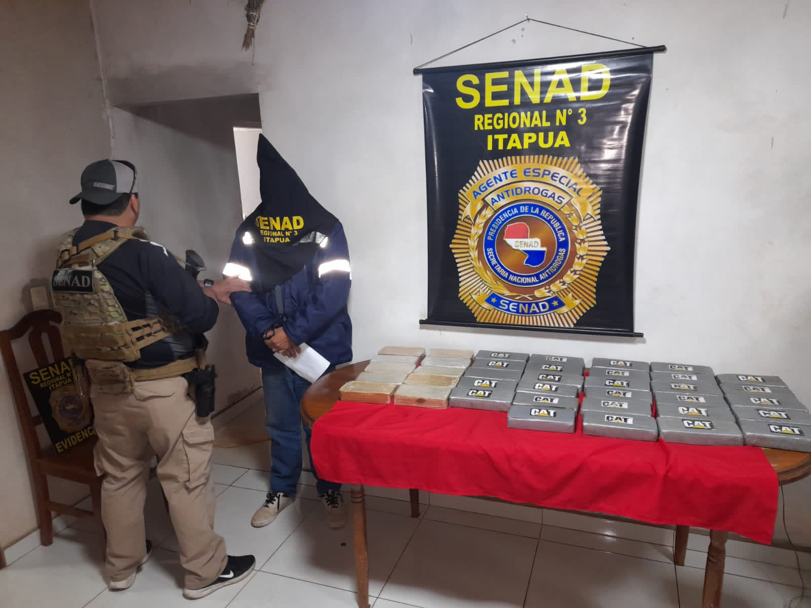 Una vez en la residencia, la comitiva encabezada por el fiscal Enrique Díaz, detuvo a Christian Arnaldo Schaefer Britto, paraguayo de 50 años. En el lugar fueron detectados 38 paquetes que totalizaron 40 Kilos 100 Gramos de Cocaína.